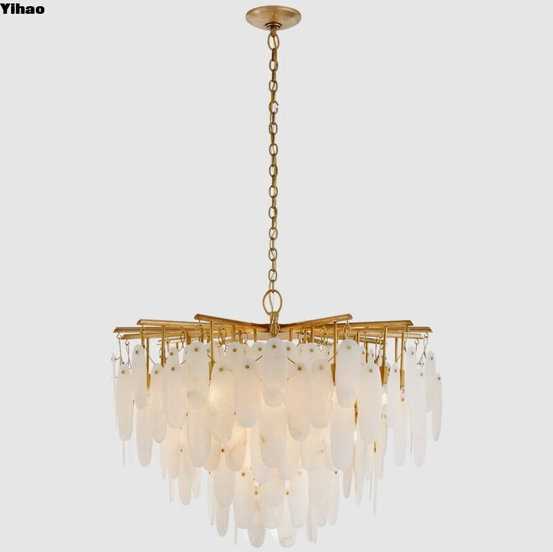 वाटरफॉल लिविंग और डाइनिंग रूम के लिए अलाबास्टर स्टोन झूमर - अद्वितीय पत्थर प्रकाश